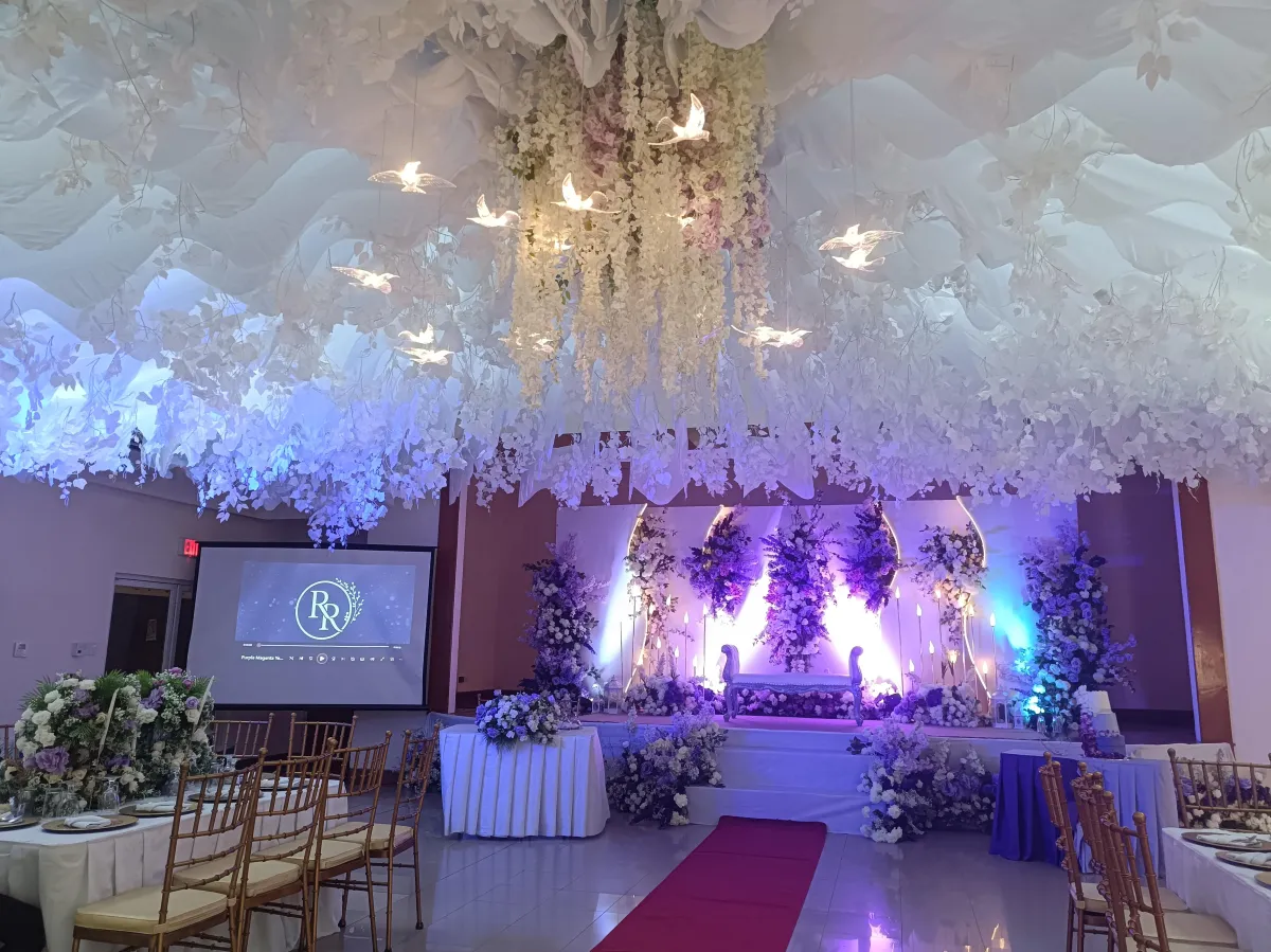 Complete Venue Transformation – From stage to ceiling to tables, every area gets styled to match.